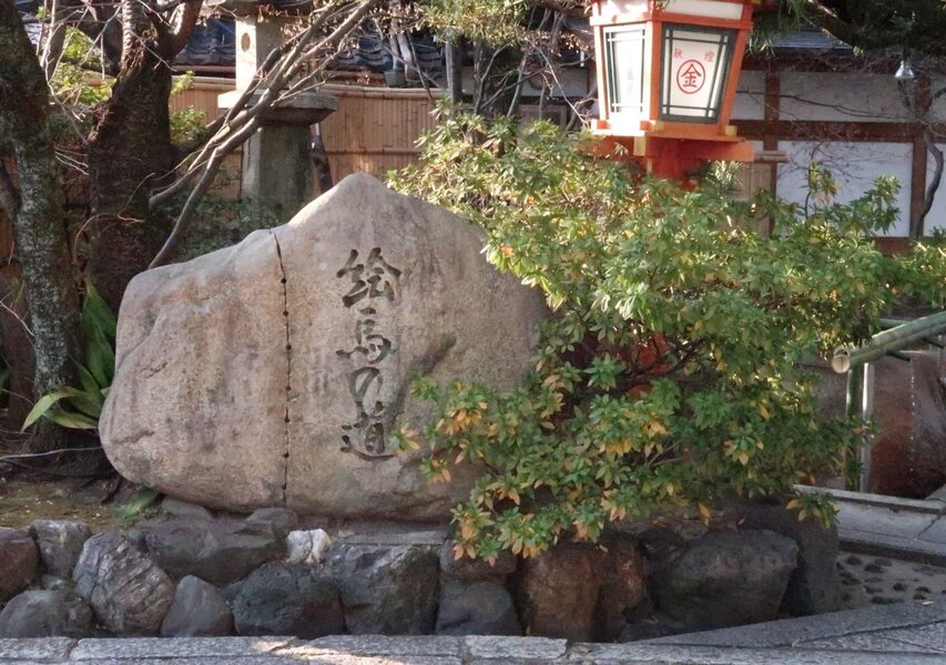 「絵馬の道」とは、当神社の参道(東大路から境内へ続く道)を指す。多数の絵馬が奉納され、悪縁を切り、良縁を結ぶご利益を願う絵馬で埋め尽くされていることから。この道を通って「縁切り・縁結び碑」へ向かい、人生の刷新を願う参拝者が多い。
